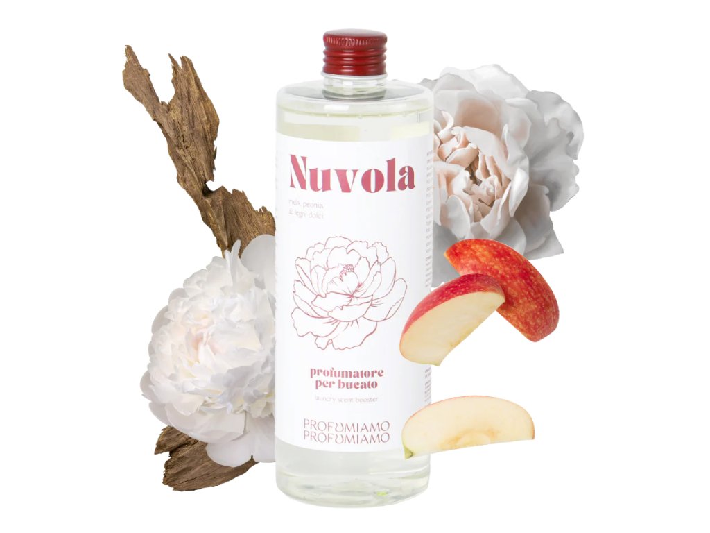 Nuvola je vôňa inšpirovaná ľahkosťou oblakov a pokojom čistého priestoru. Spája svieže jablko, jemnú pivóniu a teplé sladké drevo do harmonickej kompozície, ktorá pôsobí prirodzene, čisto a elegantne. Každé pranie sa vďaka nej mení na tichý rituál pohody.